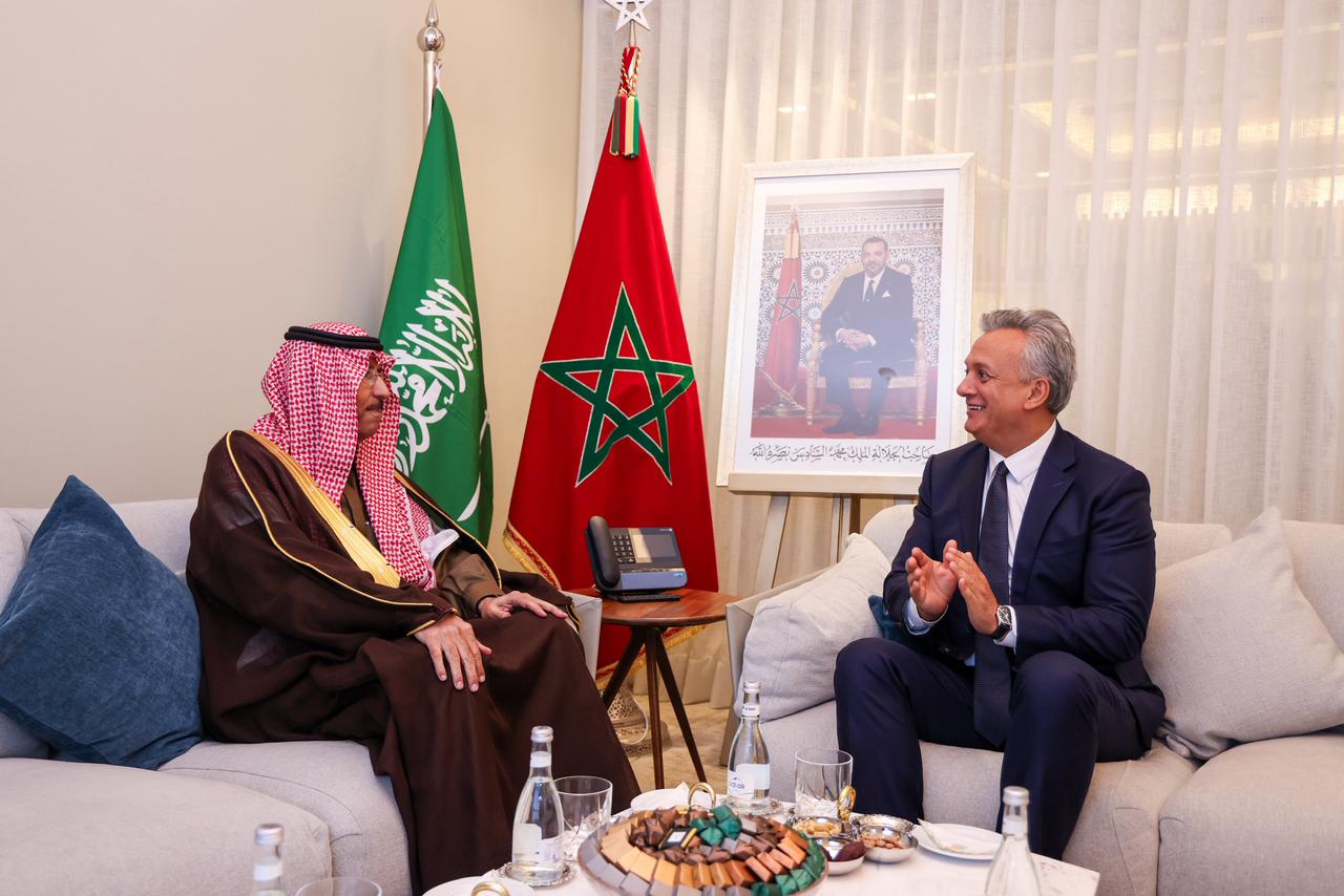 ​​​قام سعادة السفير الدكتـــور/ سامي بن عبد الله الصالح، يوم الاثنين 16رجب1447هـ الموافق 5 يناير 2026م، بزيارة لمعالي السيد/كريم زيدان الوزير المنتدب لدى رئيس الحكومة المكلف بالاستثمار والإلتقائية وتقييم السياسات العمومية بالمملكة المغربية وذلك في مقر الوزارة.وقد تطرق الحديث خلال هذا اللقاء للمواضيع ذات الاهتمام المشترك في سياق العلاقات الوطيدة بين المملكة العربية السعودية والمملكة المغربية الشقيقة، كما تم استعراض الجهود الحثيثة التي يبذلها المسؤولون في البلدين من أجل تعزيز التعاون الثنائي لتطوير الاستثمارات بين الجانبين في مختلف المجالات.​