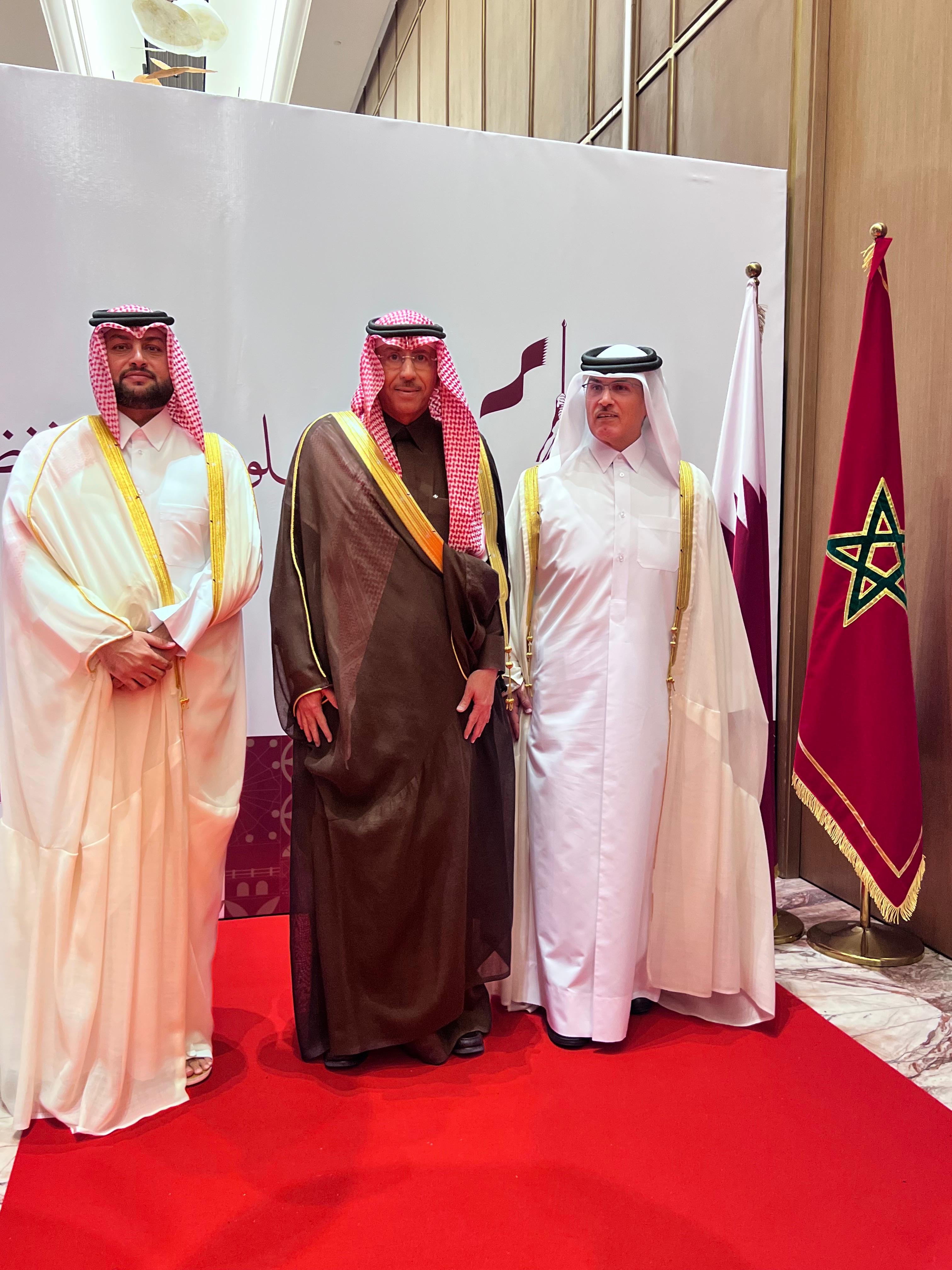 حضر سفير خادم الحرمين الشريفين لدى المملكة المغربية سعـادة الدكتور/ سامي بن عبد الله الصالح يوم الاثنين 24 جمادى الآخرة1447ه الموافق 15ديسمبر2025م، حفل الاستقبال الذي أقامه السفير القطري سعادة الشيخ عبد الله بن ثامر آل ثاني بمناسبة ذكرى اليوم الوطني لبلاده. وقد أعرب سعادته بهذه المناسبة عن أحر التهاني وأصدق التمنيات لدولة قطر الشقيقة بمزيد من التقدم والازدهار. حضر هذا الحفل عدد من المسؤولين في الحكومة المغربية وممثلو البعثات الدبلوماسية المعتمدون لدى المملكة المغربية.