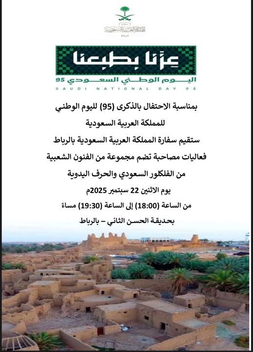 الاخبار The Embassy Portal سفارة المملكة العربية السعودية في المملكة المغربية الشؤون الاعلامية الاخبار محتوى الصفحة يبدو أن JavaScript غير مُمكن على المستعرض. الرجاء تشغيل JavaScript والمحاولة مرة أخرى. اخر الاخبار سفير خادم الحرمين الشريفين يقوم بزيارة للمدير المكلف بتسيير وكالة بيت مال القدس قراءة المزيد 13 January 2026سفير خادم الحرمين الشريفين يقوم بزيارة للمدير العام لوكالة المغرب العربي للأنباء قام سعادة السفير الدكتور سامي بن عبد الله الصالح يوم الثلاثاء 24رجب 1447هـ الموافق 13 يناير 2026م، بزيارة إلى المدير العام لوكالة المغرب العربي للأنباء السيد فؤاد عارف قراءة المزيد 11 January 2026الحفل الدبلوماسي الخيري السنوي بشراكة بين المؤسسة الدبلوماسية وسفارة المملكة العربية السعودية: تحت الرعاية السامية لصاحب الجلالة الملك محمد السادس نصره الله والرئاسة الفعلية لصاحبة السمو الملكي الأميرة للا حسناء حفظها الله، أقيم بالرباط يوم الأحد 11 يناير 2026م الحفل الدبلوماسي الخيري السنوي بشراكة بين المؤسسة الدبلوماسية وسفارة المملكة العربية قراءة المزيد 12 January 2026سعادة السفير يستقبل معالي سفيرة المملكة الأردنية الهاشمية استقبل سعادة السفير الدكتور / سامي بن عبد الله الصالح يوم الاثنين23 رجب 1447هـ الموافق 12 يناير2026م في مكتبه بمقر السفارة، معالي الأستاذة /جمانة سليمان غنيمات سفيرة المملكة الأردنية الهاشمية المعتمدة لدى المملكة المغربية قراءة المزيد 08 January 2026سعادة السفير سامي الصالح يقيم مأدبة غداء تكريماً لسعادة الأستاذ سعود آل مساعدأقام سعادة السفير الدكتور / سامي بن عبد الله الصالح يوم الخميس 19 رجب 1447هـ الموافق 8 يناير2026م، مأدبة غداء بمقر الإقامة على شرف سعادة الأستاذ / سعود بن مشبب آل مساعد نائب رئيس البعثة قراءة المزيد 07 January 2026سعادة السفير يستقبل سعادة سفير الاتحاد الأوروبيسعادة السفير يستقبل سعادة سفير الاتحاد الأوروبي قراءة المزيد 06 January 2026سعادة السفير يستقبل سعادة الأستاذ حسن طارق وسيط المملكة استقبل سعادة السفير الدكتور / سامي بن عبد الله الصالح يوم الثلاثاء 17 رجب 1447هـ الموافق 6 يناير2026م في مكتبه بمقر السفارة، سعادة الأستاذ/ حسن طارق، وسيط المملكة. وقد تطرق الحديث في هذا اللقاء للمواضيع ذات الاهتمام المشترك. قراءة المزيد 05 January 2026سعادة السفير يقوم بزيارة لمعالي الوزير المنتدب لدى رئيس الحكومة المكلف بالاستثمار والإلتقائية وتقييم السياسات العموميةسعادة سفير خادم الحرمين الشريفين يقوم بزيارة لمعالي الوزير المنتدب لدى رئيس الحكومة المكلف بالاستثمار والإلتقائية وتقييم السياسات العمومية قراءة المزيد 30 December 2025سفير خادم الحرمين الشريفين يقوم ضمن السفراء العرب المعتمدين في المغرب بزيارة لسفيرة جمهورية السودانقام سفير خادم الحرمين الشريفين سعادة الدكتور سامي بن عبد الله الصالح يوم الثلاثاء 10رجب 1447 هـ الموافق 30 ديسمبر 2025م، ضمن سفراء الدول العربية المعتمدين لدى المملكة المغربية بزيارة إلى سعادة السفيرة / مودة عمر حاج التوم سفيرة جمهورية السودان، قراءة المزيد 23 December 2025سعادة سفير خادم الحرمين الشريفين يستقبل كبير مديري الخطوط السعودية في المغرب وتونس وليبيا والجزائراستقبل سفير خادم الحرمين الشريفين لدى المملكة المغربية سعادة الدكتور سامي بن عبدالله الصالح يوم الثلاثاء 3 رجب 1447هـ الموافق 23 ديسمبر 2025م في مكتبه بمقر السفارة ، سعادة الأستاذ/ نايف عبدالله مشبب الأجهر ،كبير مديري الخطوط السعودية في المغرب وتونس وليب قراءة المزيد 16 December 2025سفير خادم الحرمين الشريفين يقدم درع التميز للموظفين المتميزين في السفارةقدم سفير خادم الحرمين الشريفين لدى المملكة المغربية سعادة الدكتور سامي الصالح يوم الثلاثاء 16 ديسمبر 2025م بمقر السفارة، درع التميز الممنوح من صاحب السمو الأمير فيصل بن فرحان وزير الخارجية قراءة المزيد 15 December 2025سفير خادم الحرمين الشريفين يحضر حفل استقبال اليوم الوطني لدولة 